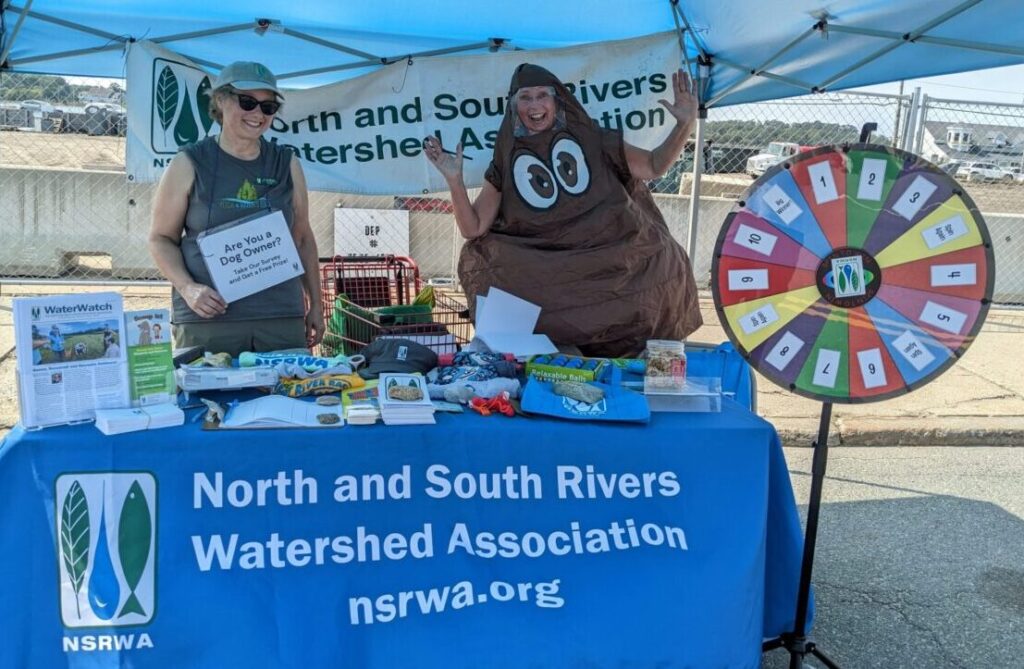 The WaterSmart Program Provided Education to the South Shore – Our WaterSmart program is a nonprofit partnership between the NSRWA and 12 towns on the South Shore: Cohasset, Duxbury, Hanover, Hingham, Hull, Kingston, Marshfield, Norwell, Pembroke, Rockland, Scituate and Weymouth. This program supports education on the South Shore through 15 topics on water conservation and stormwater, including; septic maintenance, leaf litter, fertilizer, grass clippings, pet waste, dumpster maintenance, parking lot maintenance, sediment and erosion control, low impact development, a yearly public stormwater contest with questions, the Greenscapes Guide, and ice and snow melter. Plus Gardening Green Expo, our rain barrel sale and the Water All Around You school program. New this year were Scoopy Poo, our pet waste mascot, and our trivia prize wheel, that went to local fairs and festivals. Read more about the WaterSmart program here.