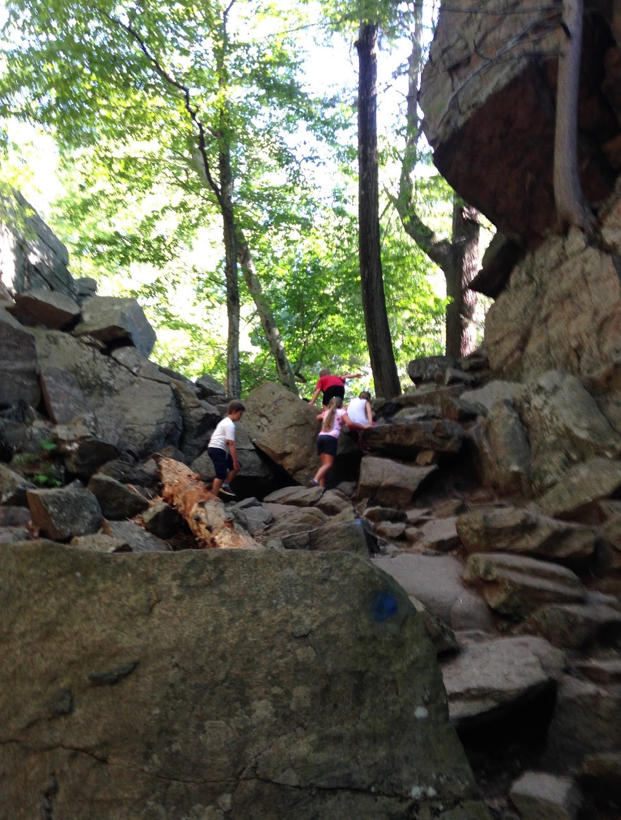 Scrambling up the rocks in Purgatory Chasm. |