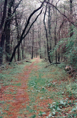 Twin Pine led directly to Stetson Meadows’ newest addition, the EMS Trail, named for the sporting goods outlet that funded its creation on last year’s National Trails Day. The EMS Trail took us through a small hemlock grove, and showed us our first lady slipper of the day, not yet in bloom. The occasional crumbling stone wall and a number of moss-covered logs made the scene especially picturesque.