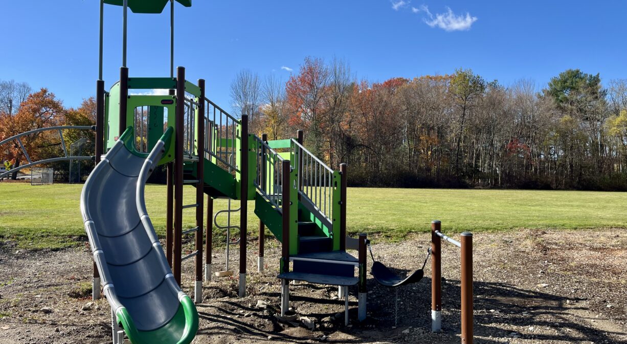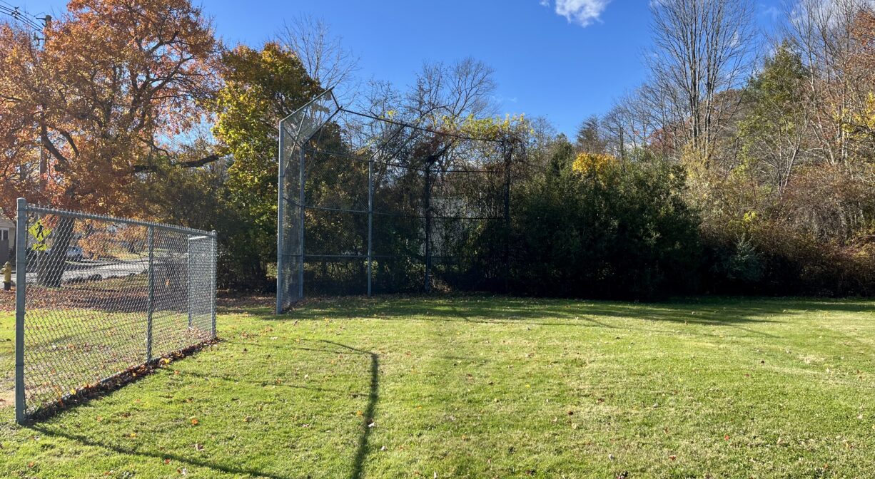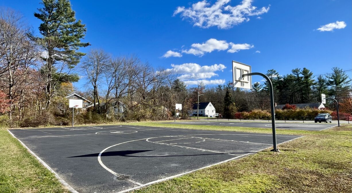 Green Street Park is a multi-purpose property in Abington with two basketball courts, a baseball field, a soccer field, picnic tables, benches, and a small playground.
