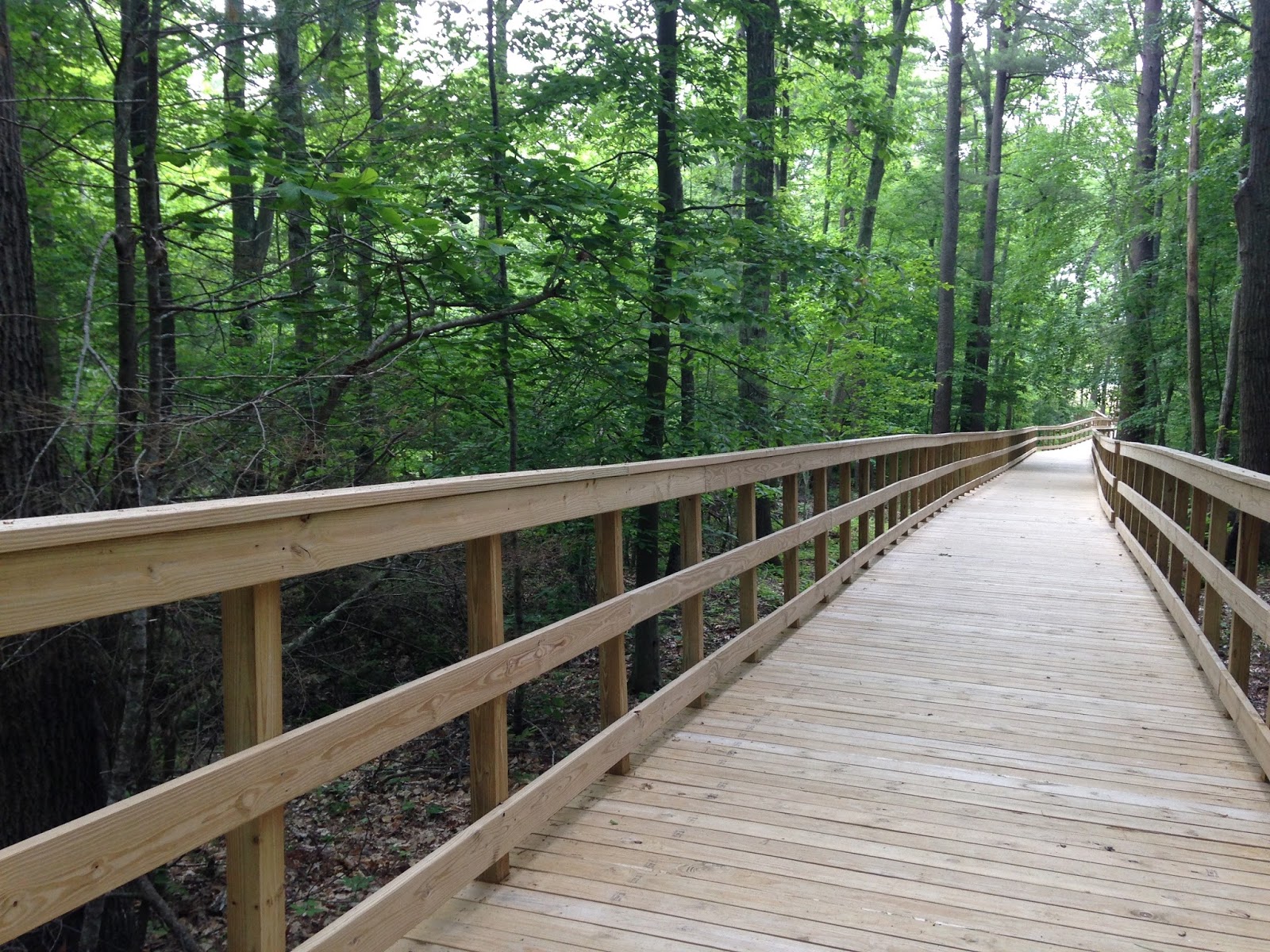 Getting back to The Pathway, the intersection of Forest and Circuit Streets is where it becomes a true cycling and walking trail. Wider than the sidewalk, with marked lanes, The Pathway continues to the Middle School complex. Along the way, it skirts the edge of the Donovan fields, and then snakes through woods and wetlands, and even over streams (thanks to some beautifully-built boardwalks).