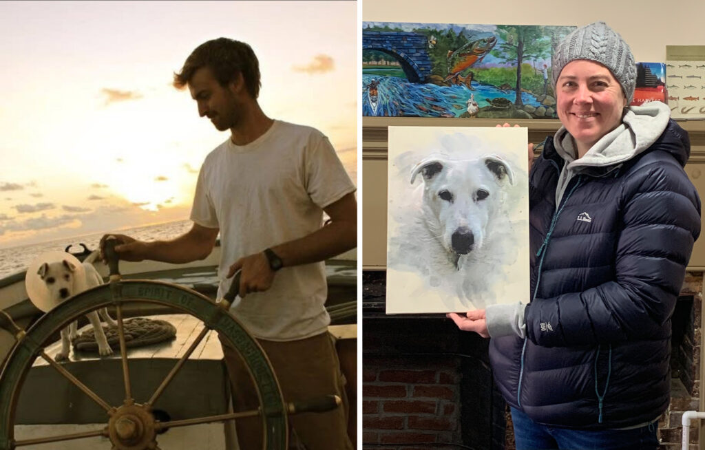Rusty just turned 15 years old. I adopted him from the Humane Society of St. Thomas in the USVI as a puppy in February 2011. He sailed back on the schooner “Spirit of Massachusetts” (now a floating restaurant, but at the time a sailing school vessel). We met my now wife Susannah in Charleston SC on the way north that spring. Despite being from the tropics, he loves winter and snow, and cold water doesn’t stop him from wading and swimming in the Jones River. ~ Matt Wheble
