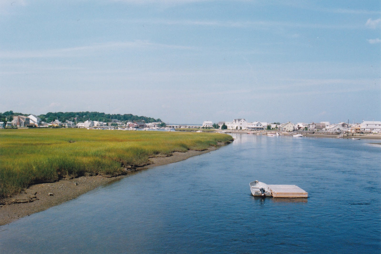 I’ve been swimming at the inland side of Rexhame Beach in Marshfield, just a few miles upstream of where the river meets the sea. The water is shallow — at low tide you could practically walk across — so on a hot day it can be like bath water if you catch it right. Being so close to the ocean, though, the temperature can change considerably in a matter of hours. As the tide comes in, the water gets colder. But it’s still always warmer than the beach.