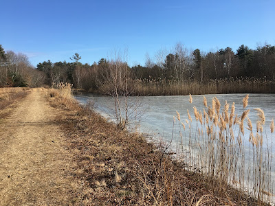 Crowell Conservation Area, Duxbury:For 100 years this property was a working cranberry bog. Now it belongs to the Duxbury Conservation Commission. The wide dirt roads around the bogs provide easy walking on relatively flat surfaces. Additional trails lead into the woods. There are 60 acres in total. You’ll find a small parking area on Lincoln Street near the roundabout, and a kiosk for pet waste bags a short way up the main trail. When cranberry bogs fall into disuse, they provide an excellent habitat for wildlife. Birders will love this spot.